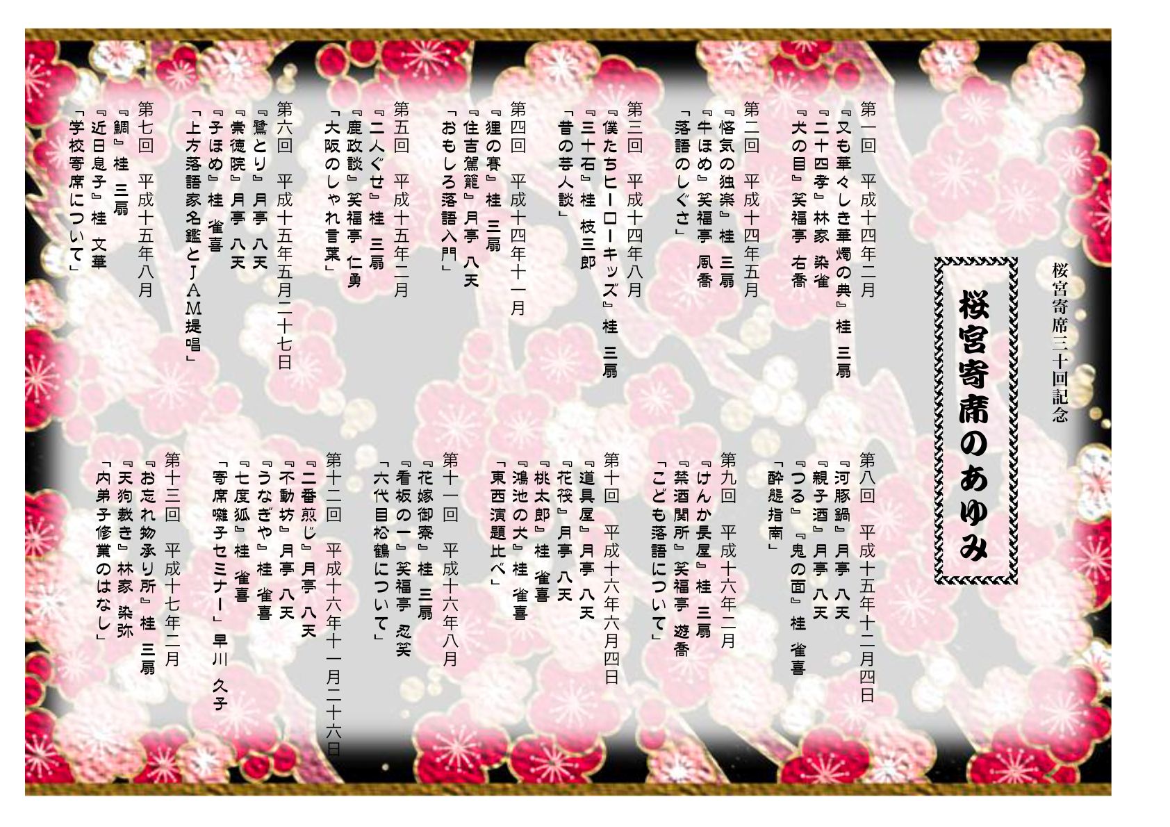 「桜宮寄席」<30回記念公演>(14時開演)